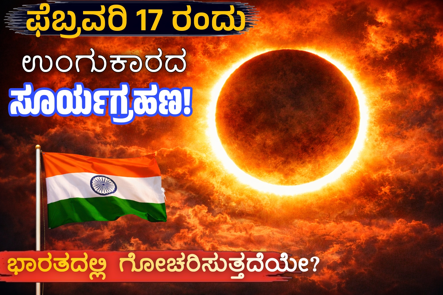 ಫೆಬ್ರವರಿ 17ರಂದು ನಡೆಯಲಿರುವ ಉಂಗುರಾಕಾರದ ಸೂರ್ಯಗ್ರಹಣ ಖಗೋಳ ಪ್ರೇಮಿಗಳಿಗೆ ವಿಶೇಷ ಅನುಭವ ನೀಡಲಿದೆ. ಇದು ವರ್ಷದ ಪ್ರಮುಖ ಆಕಾಶಘಟನೆಗಳಲ್ಲಿ ಒಂದಾಗಿದೆ. ಸರಿಯಾದ ಸುರಕ್ಷತಾ ಕ್ರಮಗಳನ್ನು ಪಾಲಿಸಿ ಈ ಅಪರೂಪದ ದೃಶ್ಯವನ್ನು ವೀಕ್ಷಿಸುವುದು ಉತ್ತಮ.